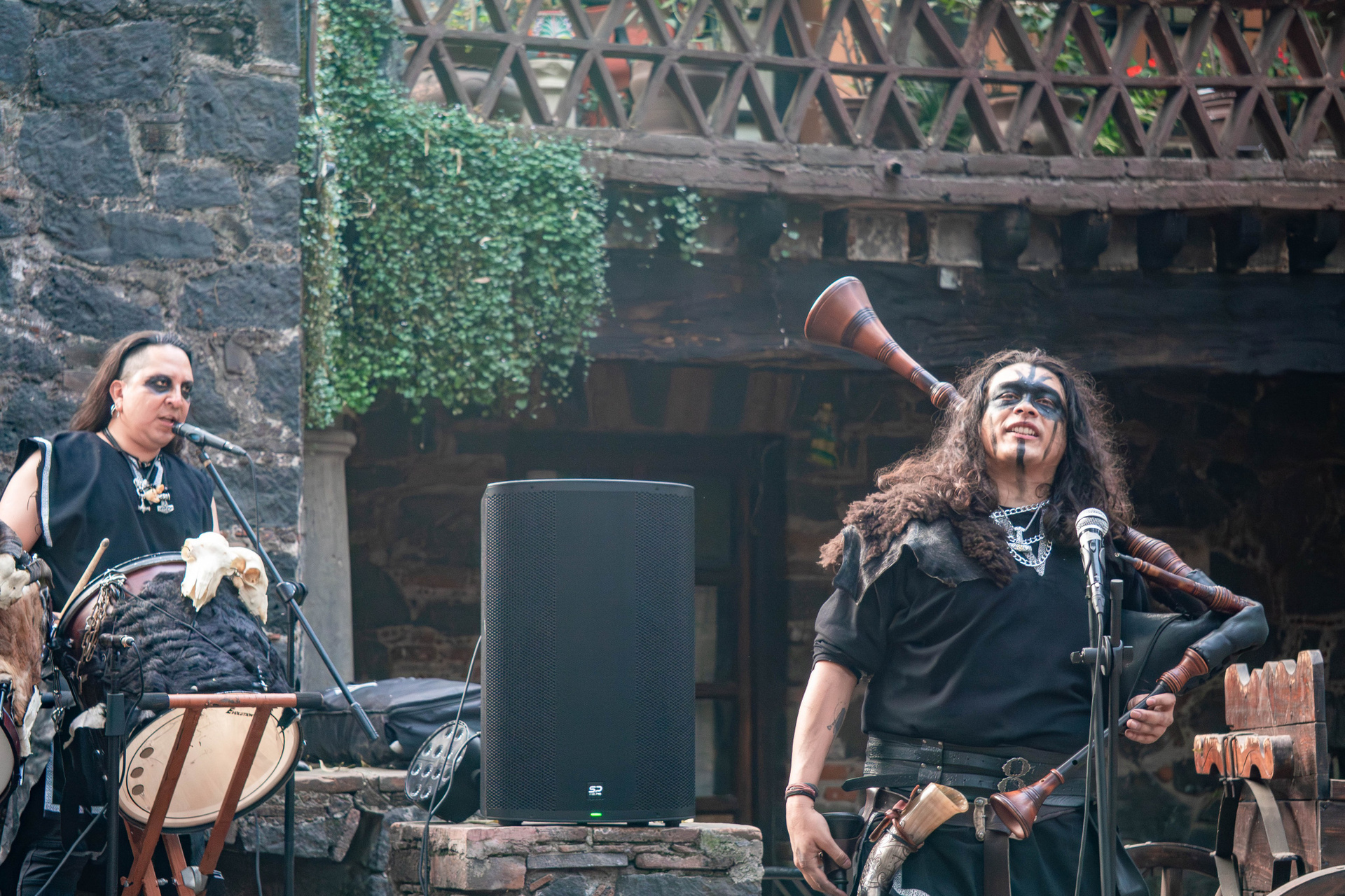 Folk Fest in Coyoacán — the day the bagpipes took over. Their deep drone hung above the crowd and carried two blocks away. Celtic fused with Scandinavian motifs and modern folk on ancient instruments. Time and space machine: medieval Europe inside Indio Fernández’s stone mansion, in the same neighborhood where Frida Kahlo lived.